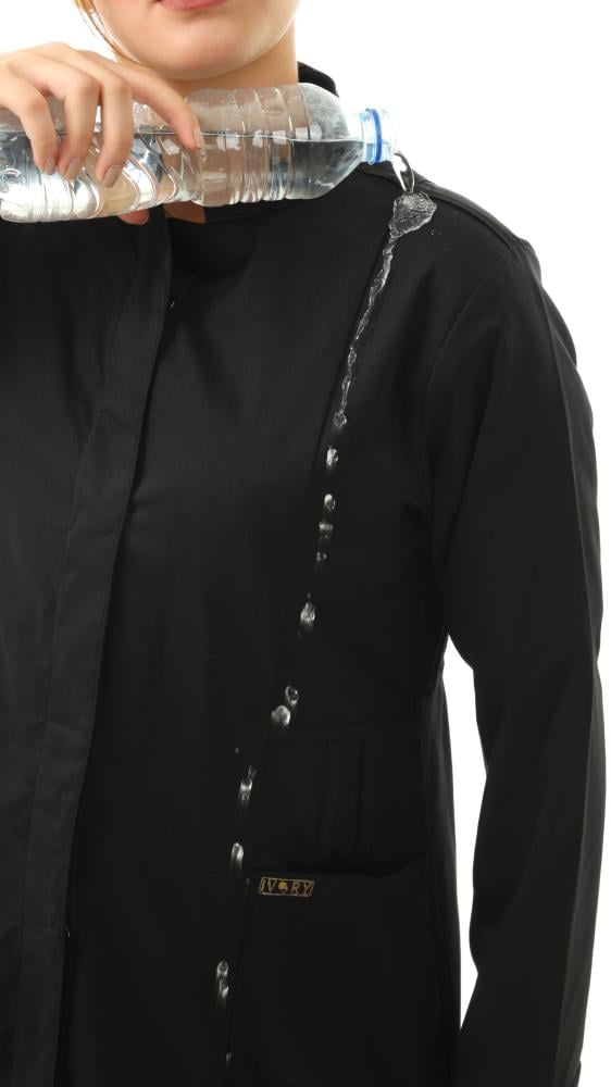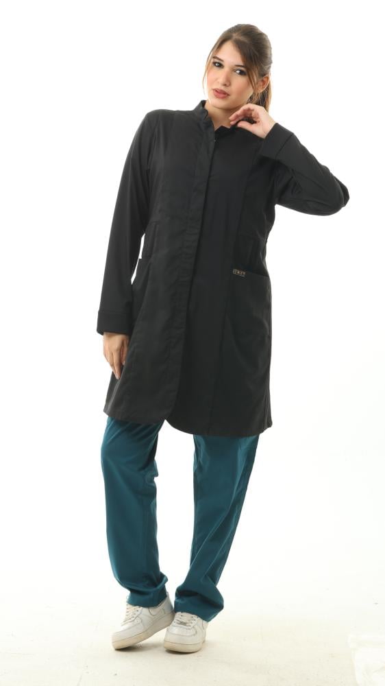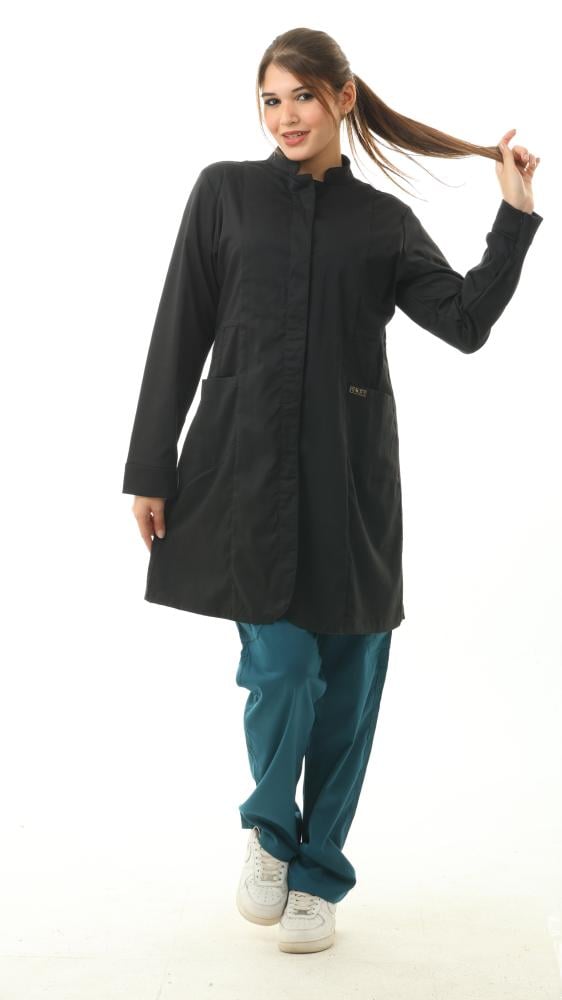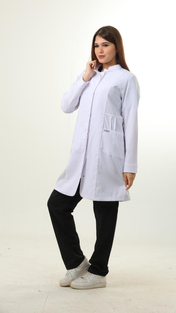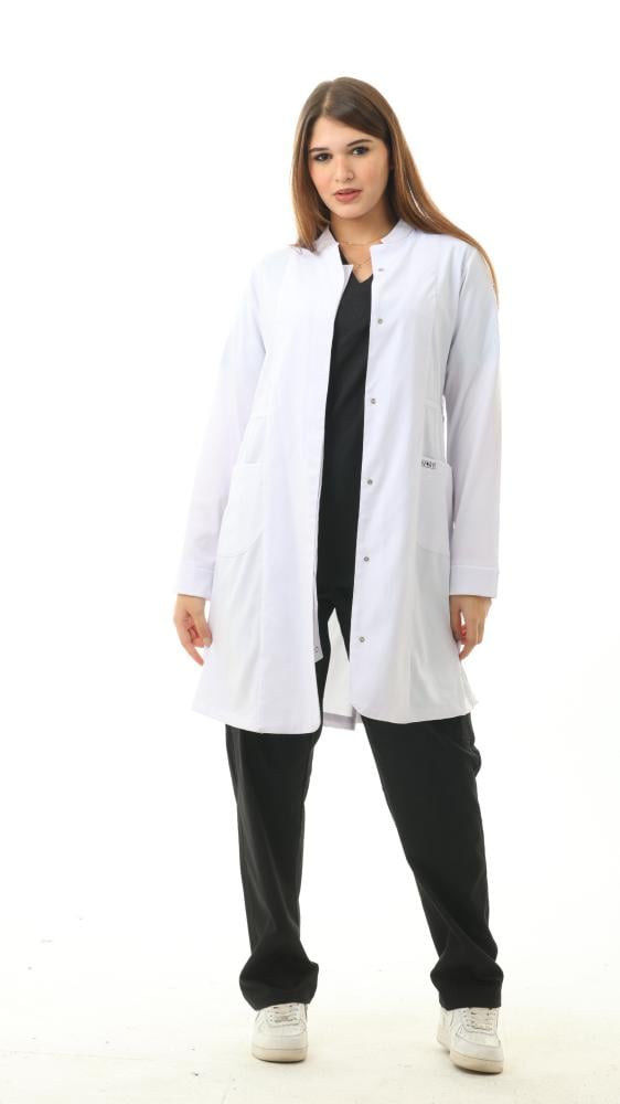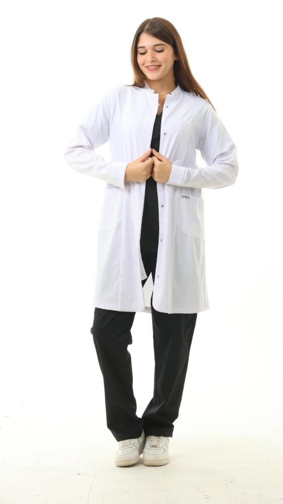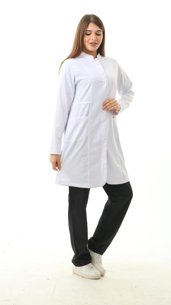 الميزات: لابكوت مضاد للانكماش ومضاد للتجاعيد ومضاد للماء والبكتريا يتميز بنصف ياقة وأكمام طويلة وجيوب أمامية وأساور مضلعة وأزرار كبس غير مرئية في الأمام. سحاب مخفي في نهاية الأكمام.